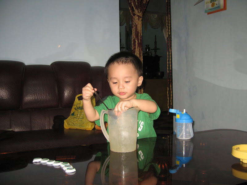 Coi hết lễ vào nhà em làm 1ca nước chanh to chưa, uống thì ít mà cho tay vào nghịch thì nhiều :
